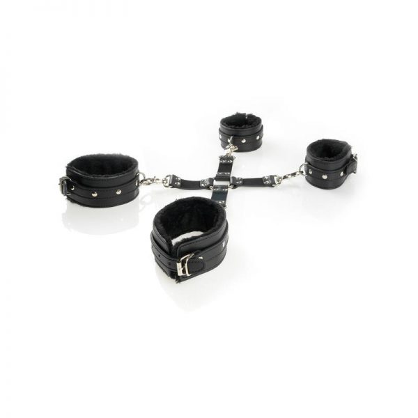 Toma el control total sobre cada movimiento de tu pareja con este conjunto de esposas para principiante. Este kit es fácil de usar e incluye una muñequera súper fuerte y puños de tobillo forrado con suave piel de imitación para una comodidad excepcional, pero están hechas de metal pesado para asegurar que tu pareja no escape. Disfruta de la emoción de ser atado sin tener que preocuparte por las complicadas técnicas y la elaboración de nudos complicados. Los puños se adhieren a las esposas con clips de metal con resorte y se ajustan fácilmente con una correa para adaptarse a la mayoría de los tamaños. ¡Una vez que tu pareja esté atado lo que suceda después es cosa tuya!