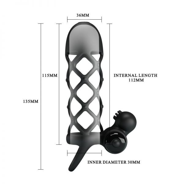 Obtén una erección más potente y placentera con esta funda para el pene. Cuenta con un diseño en red para añadirle textura y una goma para los testículos para una comodidad extra. Además, cuenta con una bala vibradora (no extraíble) y un pequeño estimulador para que tu pareja se quede sin habla.