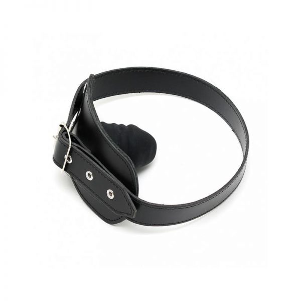 Mordaza de cuero ajustable con hebilla de metal en la parte posterior. La mordaza es un pene de látex (4x6cm). Perfecto para vivir noches de BDSM sin límite.