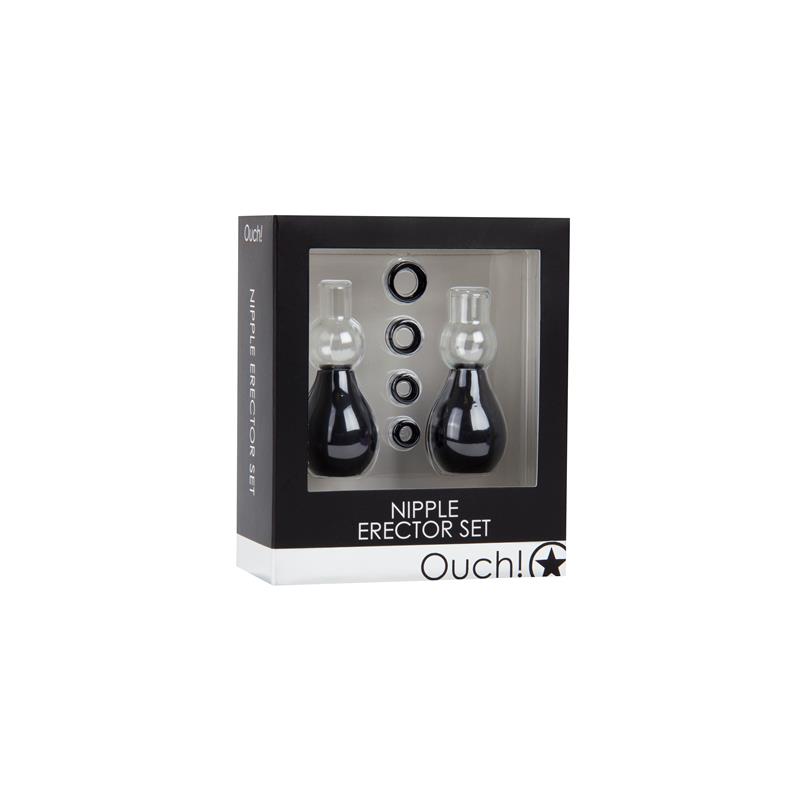 ¡Mantén tus pezones erguidos y sensibles con este conjunto de erección para pezones y experimenta el placer del bombeo! Para comenzar, prueba la bomba con la abertura más pequeña, desliza el anillo de goma de tu elección sobre la abertura y colócalo en el pezón. Aprieta el depósito de aire hasta que alcances el resultado deseado y desliza el anillo de goma alrededor del pezón para mantenerlo duro y sensible. Para que los pezones sean aún más grandes, usa la bomba con la apertura más ancha. ¡Que te diviertas!