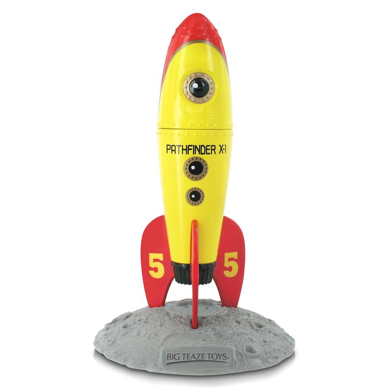 ¡Conoce el vibrador en forma de cohete! ¡El nuevo juguete icónico de Big Teaze Toys! Con la forma de un cohete de estilo retro, este vibrador te llevará a la luna… y de vuelta a por más. Con su diseño único, funcional y aerodinámico para una inserción más fácil y con una base acampanada para un buen agarre, ¡el Rocket Vibrator te hará ver las estrellas!
